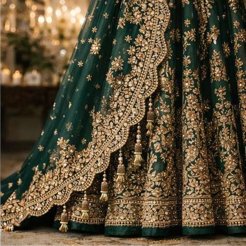 The Ayesha Zardozi Classic is part of Kalakar’s exclusive Wedding & Festive Premium Line — designed for moments that demand presence, grace, and refined luxury. Crafted using Premium Raw Silk, this ensemble reflects heritage craftsmanship fused with modern elegance.