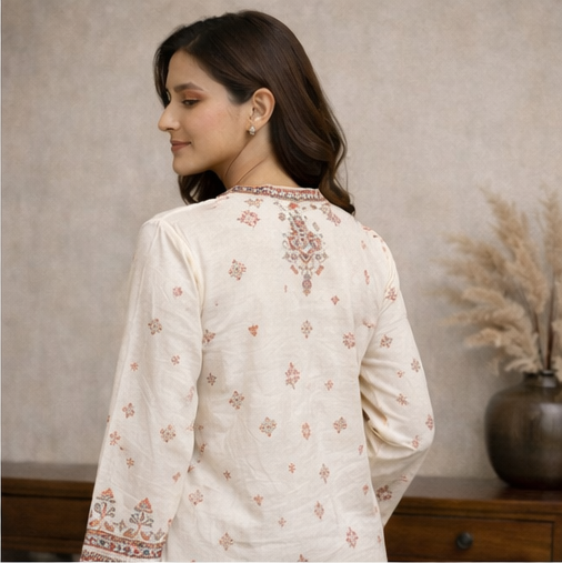 The Zarmin Ethnic Motif Shirt is designed for modern women who value elegance, comfort, and refined detailing. Crafted from Textured Lawn, this shirt delivers breathable comfort with a structured yet graceful fall.